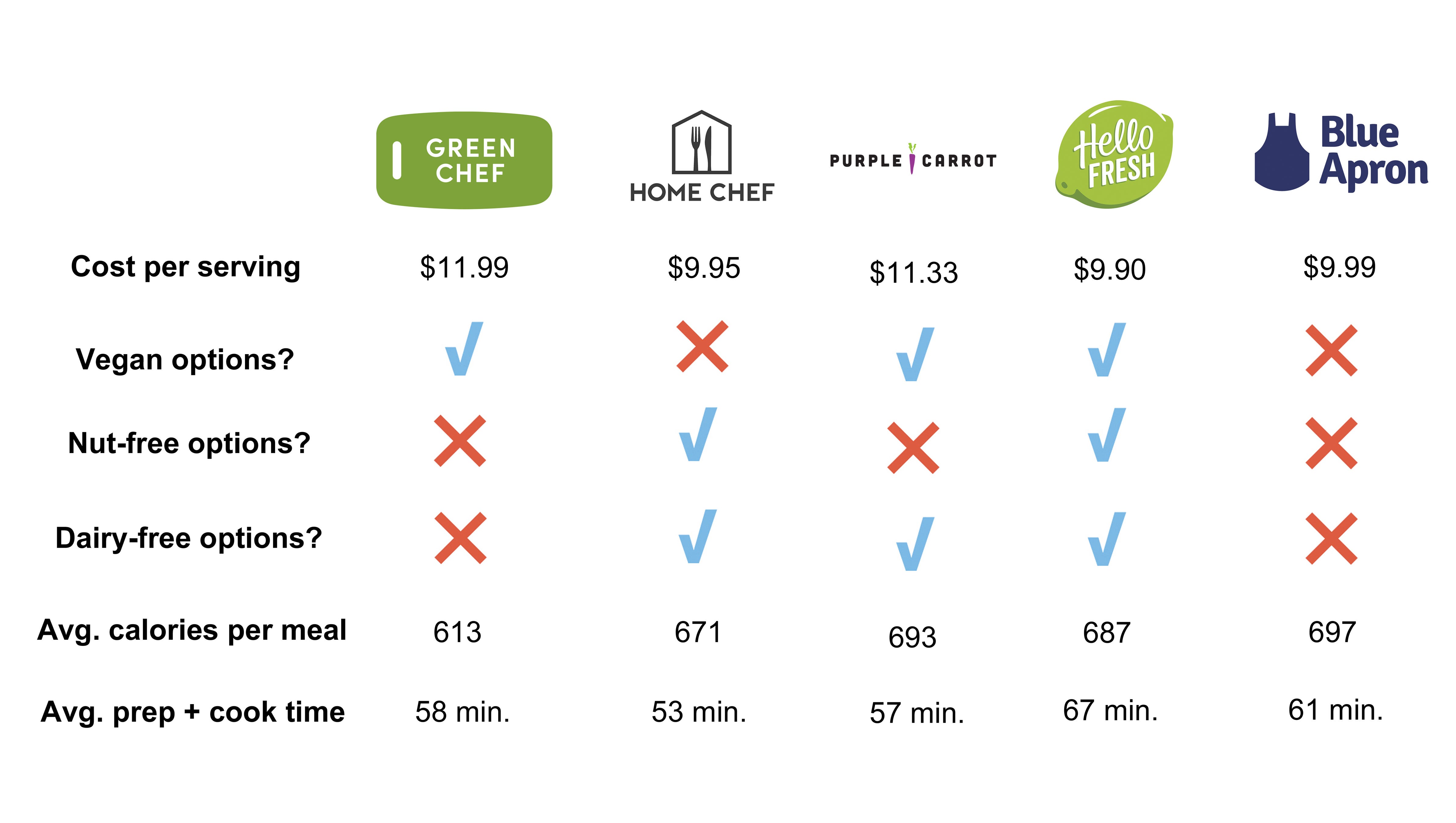 Best Meal Kits Delivery Services Comparison Charts List Mealfinds